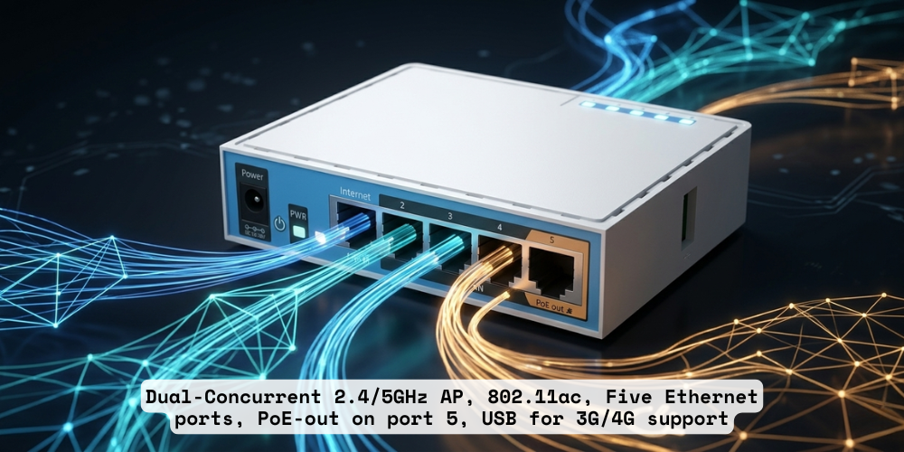 The hAP ac lite is a Dual-concurrent Access Point, that provides WiFi coverage for 2.4GHz and 5GHz frequencies at the same time.