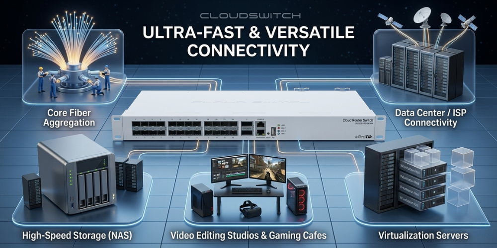 If you are working with substantial amount of data – like providing Internet access or maintaining a huge data center – this is the perfect upgrade for your setup. CRS326-24S+2Q+RM is our first product with 40 Gbps QSFP+ ports for remarkably fast and stable fiber connection.