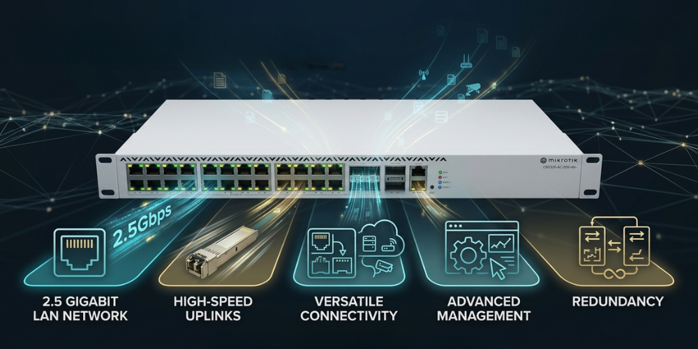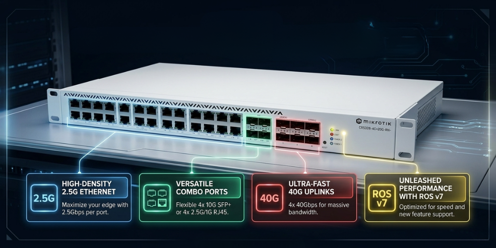 - Tags: 2.5g/10g/40g managed rackmount switch, Enterprise multi-gigabit switch, Managed switches, Mikrotik, Network switches, Switches