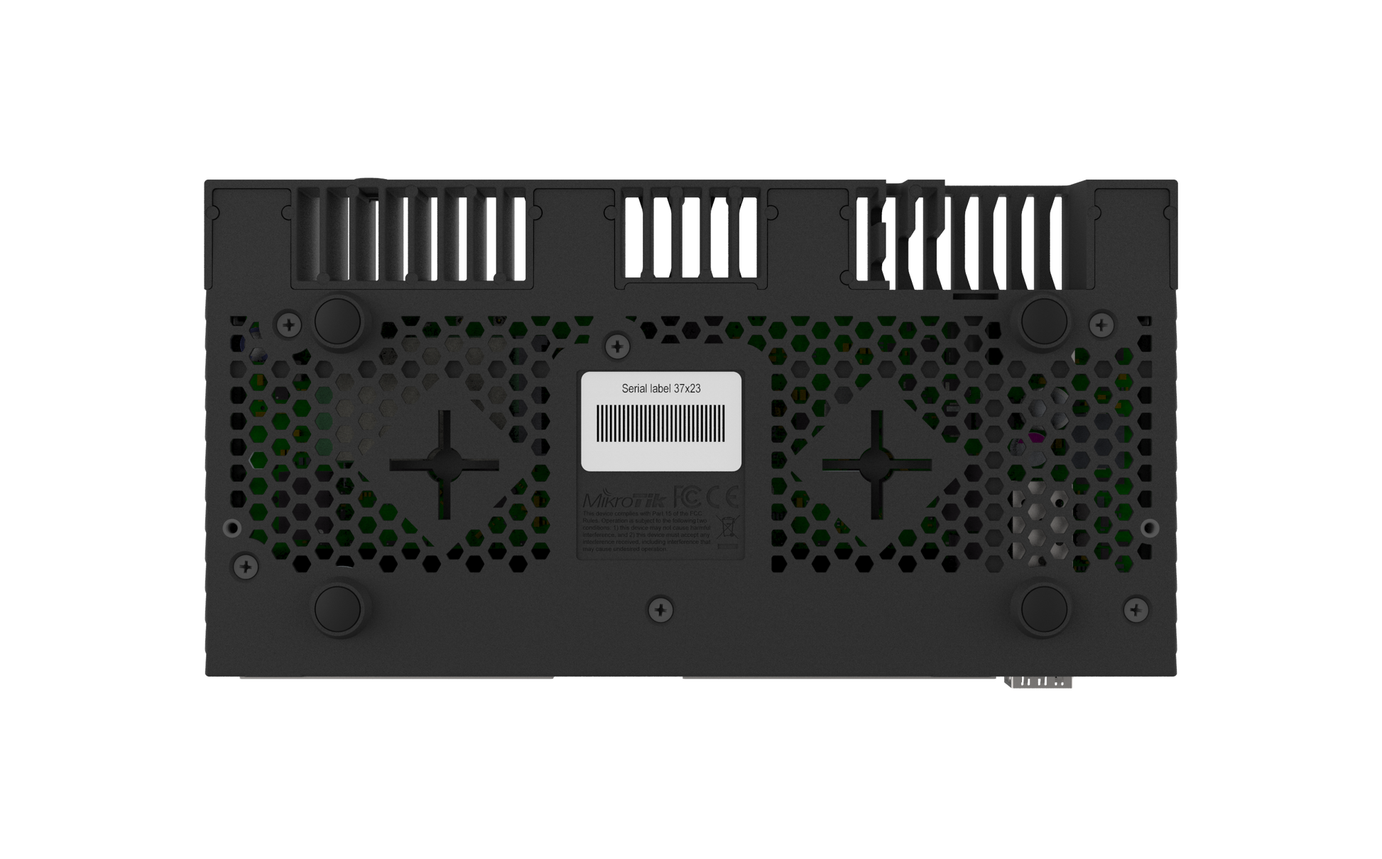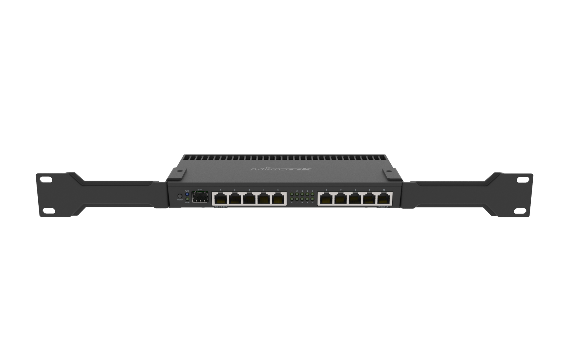 RB4011iGS+RM (Ethernet model) includes two rackmount ears that will securely fasten the unit in a standard 1U rack space.