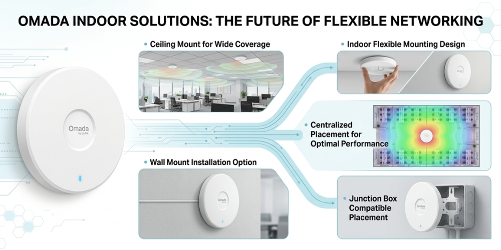 - Package Content: Omada Wi-Fi 7 Ceiling Mount Access Point EAP723, Installation Guide, Ceiling/Wall/Junction Box Mounting Kit